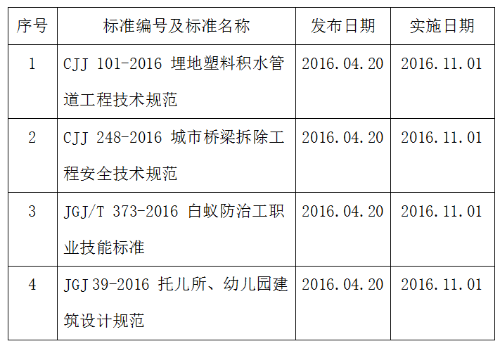 2016年11月開始實(shí)施的工程建設(shè)標(biāo)準(zhǔn)