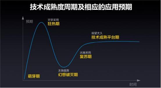 “數(shù)字建筑”描繪的藍圖非常美好,因而行業(yè)也有了一些質疑的聲音。概念是不是太過超前?技術手段成熟了嗎?在回答這些問題之前,需要先了解關于新技術應用的周期論:“無人關注的萌芽期——蜂擁而至的狂熱期——幻想破滅的懷疑期——踏實應用的復蘇期——技術成熟的平臺期”。