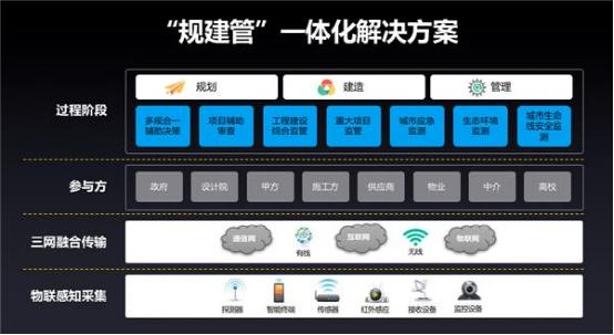 當前,一些重要城市已開始應用基于“數(shù)字建筑”的“規(guī)建管”一體化解決方案。通過探測器、智能終端、傳感器、紅外感應等物聯(lián)感知采集,通信網(wǎng)、互聯(lián)網(wǎng)、物聯(lián)網(wǎng)“三網(wǎng)”融合傳輸,將政府、設計院、甲方、施工方、供應商、物業(yè)、中介乃至高校等多參與方拉到一個平臺上,最終形成“多規(guī)合一輔助決策”、“工程建設綜合監(jiān)管”、“城市應急/生態(tài)環(huán)境監(jiān)測”、“城市生命線安全監(jiān)測”等城市規(guī)劃、建設、管理的良方。