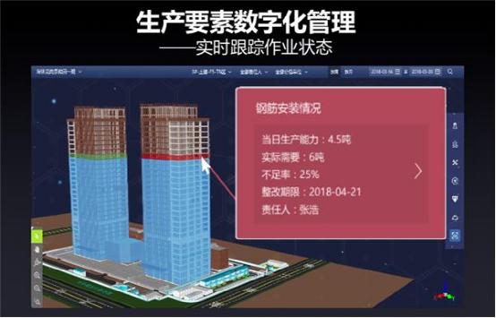 其三,實時跟蹤作業(yè)狀態(tài)。隨著定位技術的發(fā)展,可以更準確的對具體某個工作面的勞動力進行跟蹤,實現(xiàn)作業(yè)面的精細化管理,例如鋼筋安裝當日生產(chǎn)能力是4.5噸,實際上需要6噸,不足率25%,參考這個數(shù)值即可整改人員和物資管理,實現(xiàn)最優(yōu)化。規(guī)避“鋼筋工提前下班、木工加班到很晚”類似的施工問題。