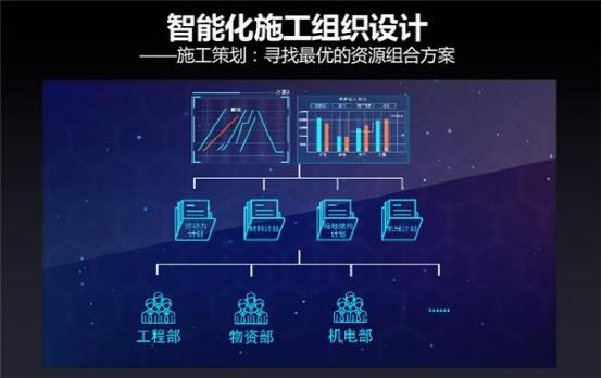 “智能化施工組織設計”尋找最優(yōu)資源組合方案。施工總計劃是各項資源投入計劃的主要體現(xiàn),而將BIM技術與大量管理數(shù)字資產(chǎn)集成,可以提供幾種施工進度計劃方案,再通過各方案的資源投入指標對比分析,最終優(yōu)選出適合本項目的總進度計劃,計劃選定后還可自動形成支持該計劃執(zhí)行的相關配套計劃。