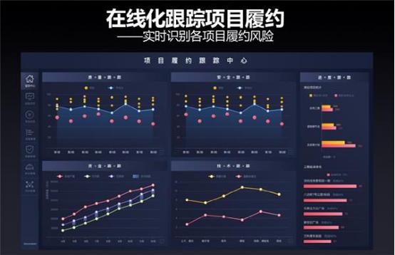 “在線化跟蹤項目履約”實時識別各項目履約風險。當每個項目管理過程實現(xiàn)數(shù)字化,可按照標準化管理要求將管理過程通過指標對比來跟蹤各項目的履約過程,從管理的不同維度識別履約風險,通過系統(tǒng)分析,按照風險大小篩選問題相對嚴重的項目,針對性的跟蹤和管控,如資金回收率最低的項目、和重要里程碑節(jié)點偏差最大的項目、質量和安全綜合評定最差的項目等。
