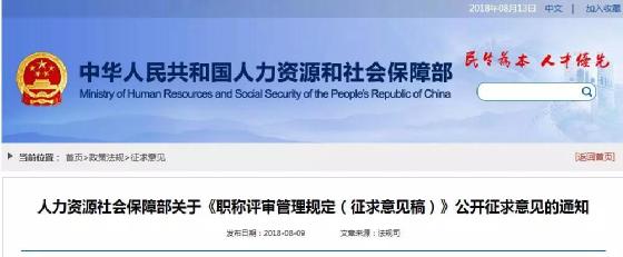 職稱評(píng)審管理規(guī)定(征求意見稿)全文,大家登錄人力資源社會(huì)保障部官網(wǎng)查看,在此不再贅述。
