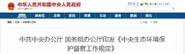 近日,中共中央辦公廳、國務(wù)院辦公廳印發(fā)的《中央生態(tài)環(huán)境保護(hù)督察工作規(guī)定》。