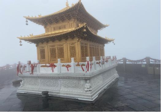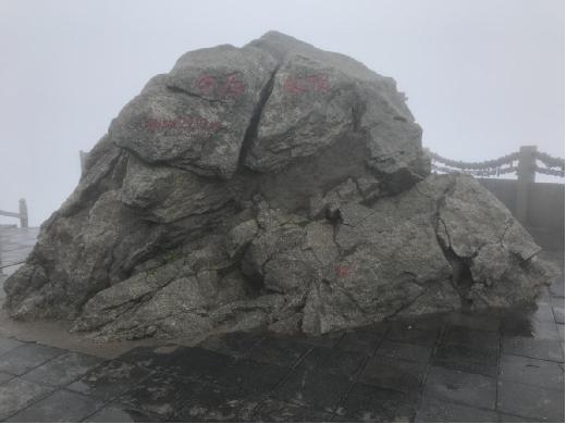 第三站到達(dá)的是玉皇頂。乘觀光車到達(dá)換乘點(diǎn)后,一行人乘纜車上山,后又花一個多小時爬上一千多米的高山,由于第一天太過疲憊,到達(dá)飛來石時,一行人已經(jīng)氣力耗盡,但仍堅持到底,利用最后的一絲力氣爬上了最后幾個臺階,終于登上了伏牛山三大主峰之一,海拔2216米的玉皇頂。于峰頂眺云海,蒸騰的云霧似海邊之云,有水汽洗濯,又似天外之云,無塵埃污染,猶如置身人間仙境。后大家一起焚香祈禱,拜見玉帝。后掛了全家福鎖,這次的白云山之行也到了尾聲。